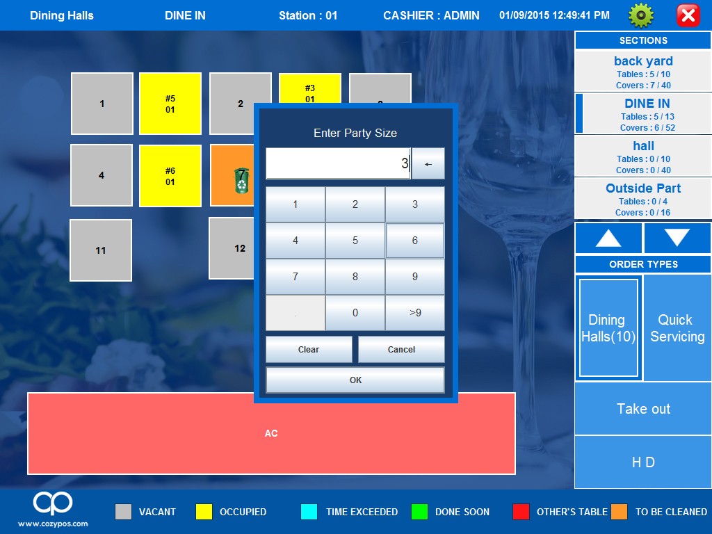 - Assign party size to table