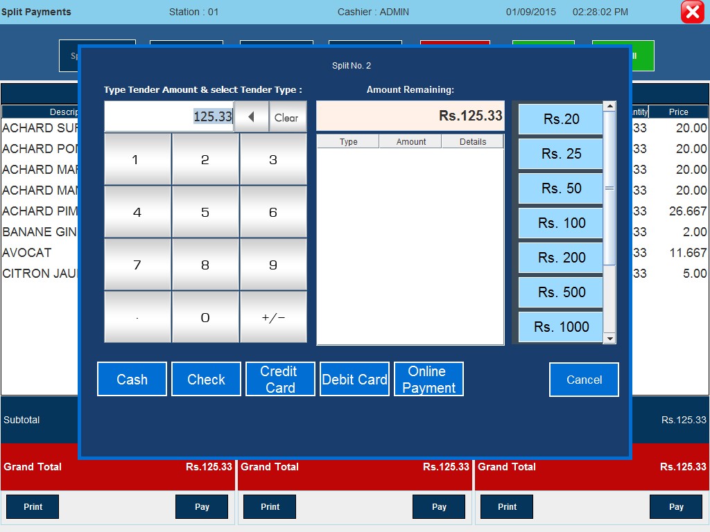 - Coupon/Cash denominations while taking payment